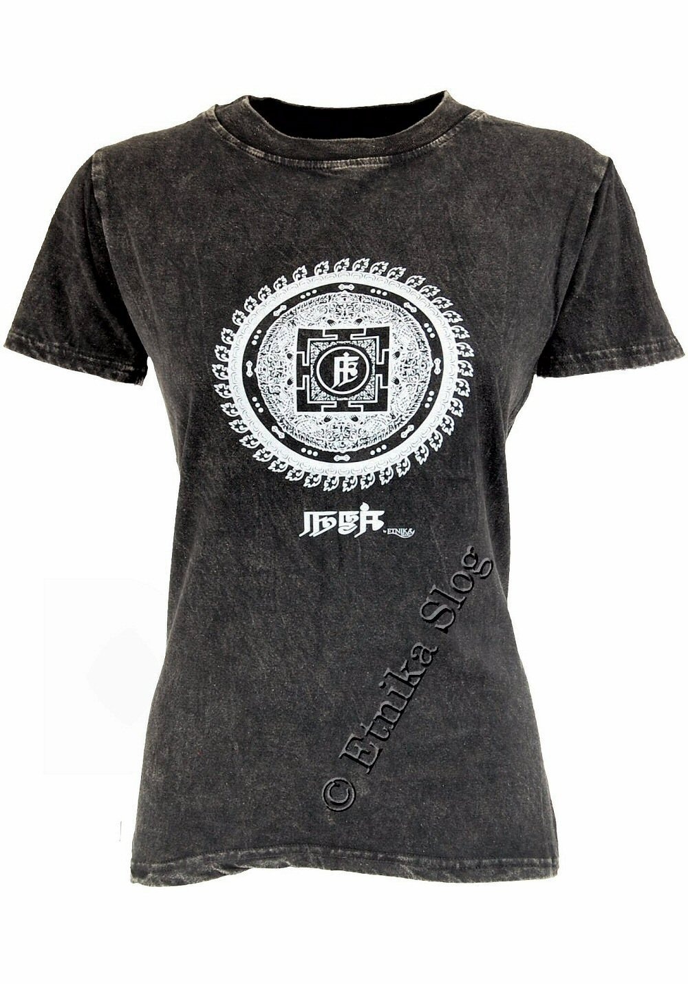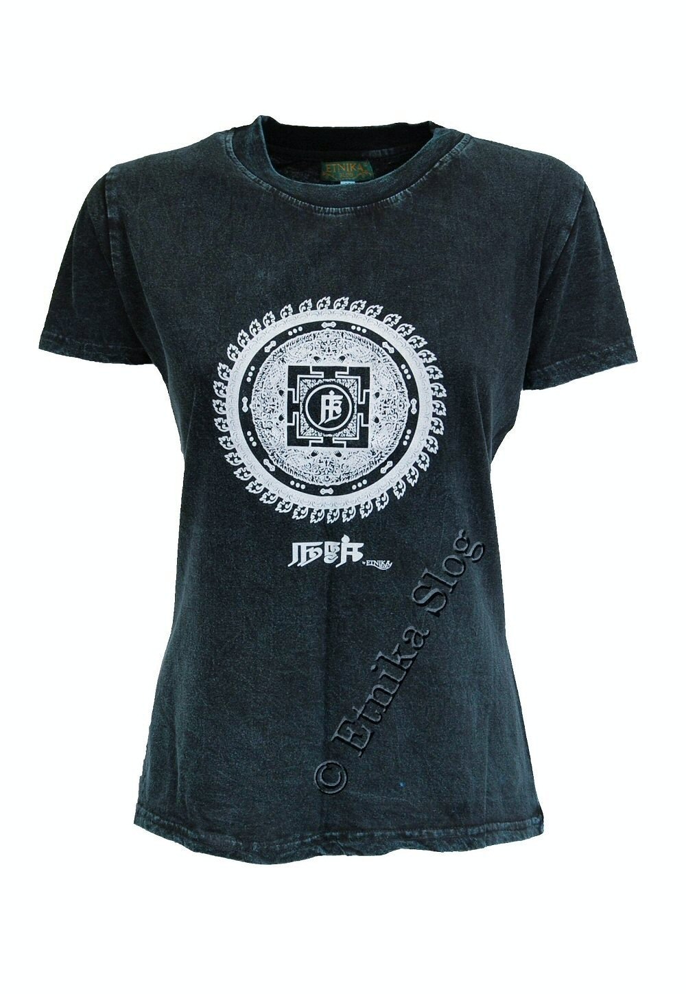 T-SHIRT DONNA IN COTONE STONEWASHED - OVERDYE CON STAMPA [ MANDALA ]