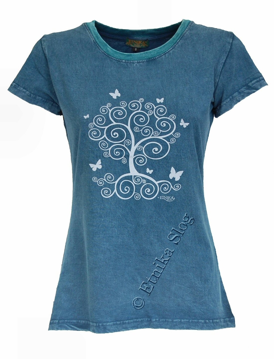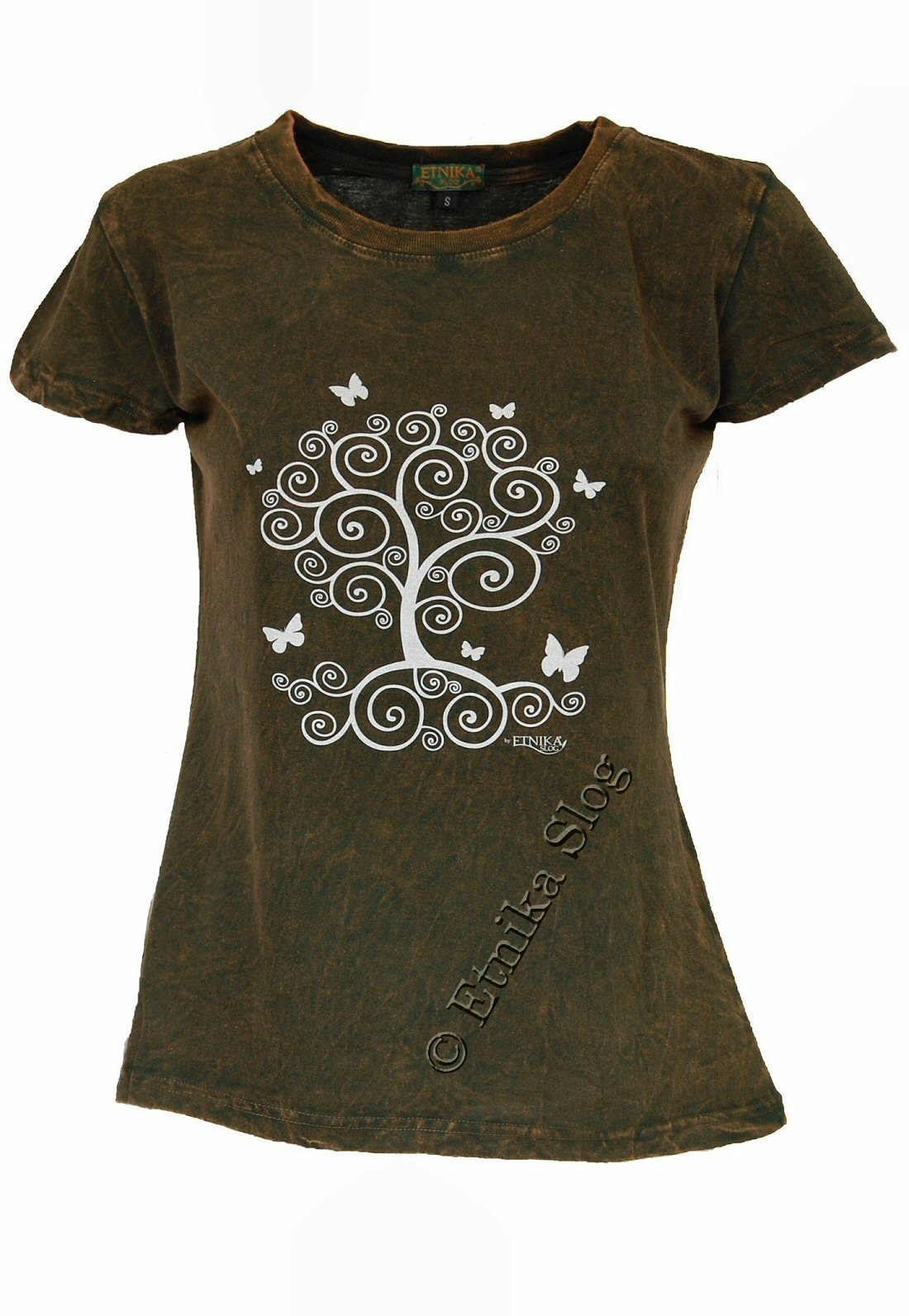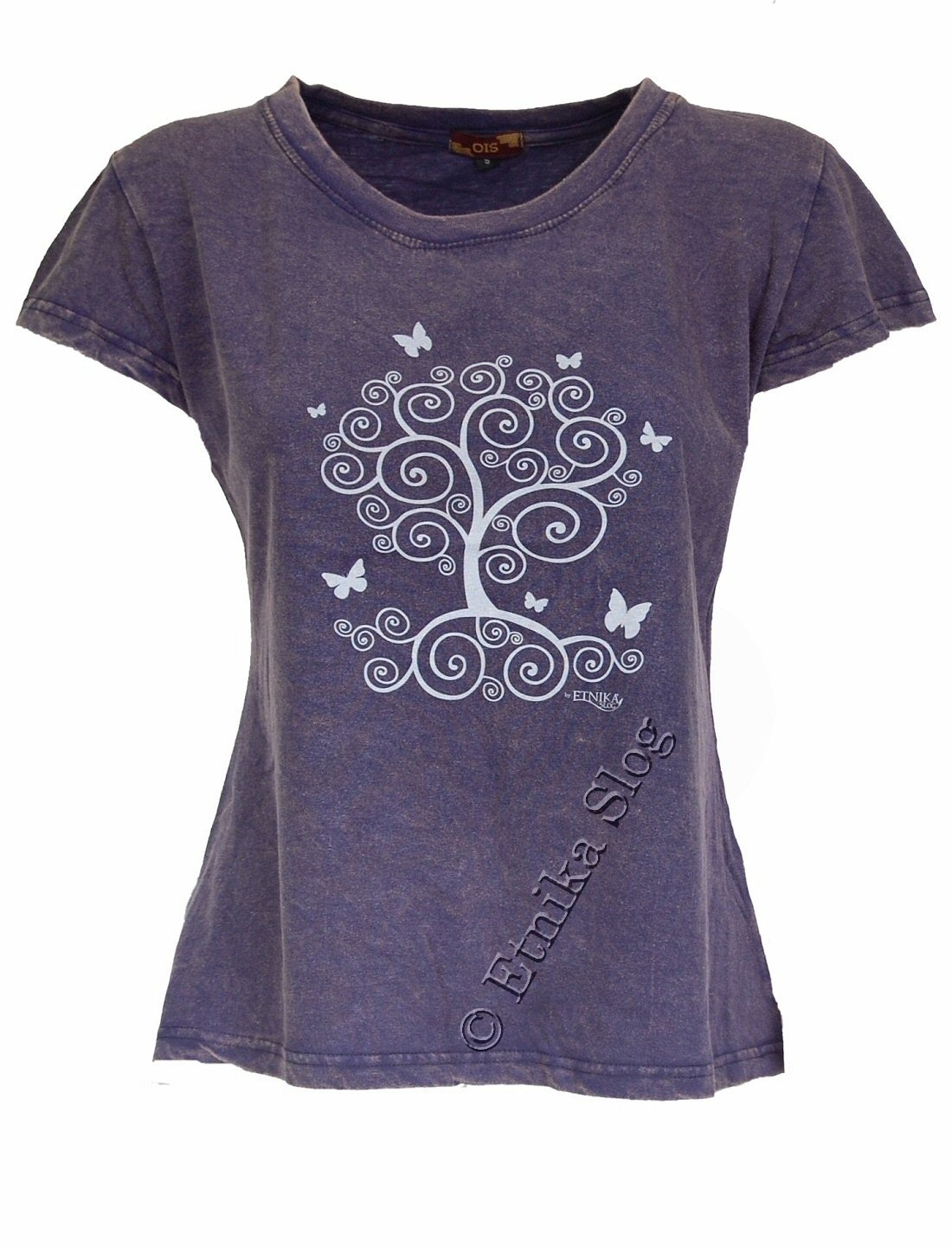 T-SHIRT DONNA IN COTONE STONEWASHED - OVERDYE CON STAMPA [ ALBERO VITA ]