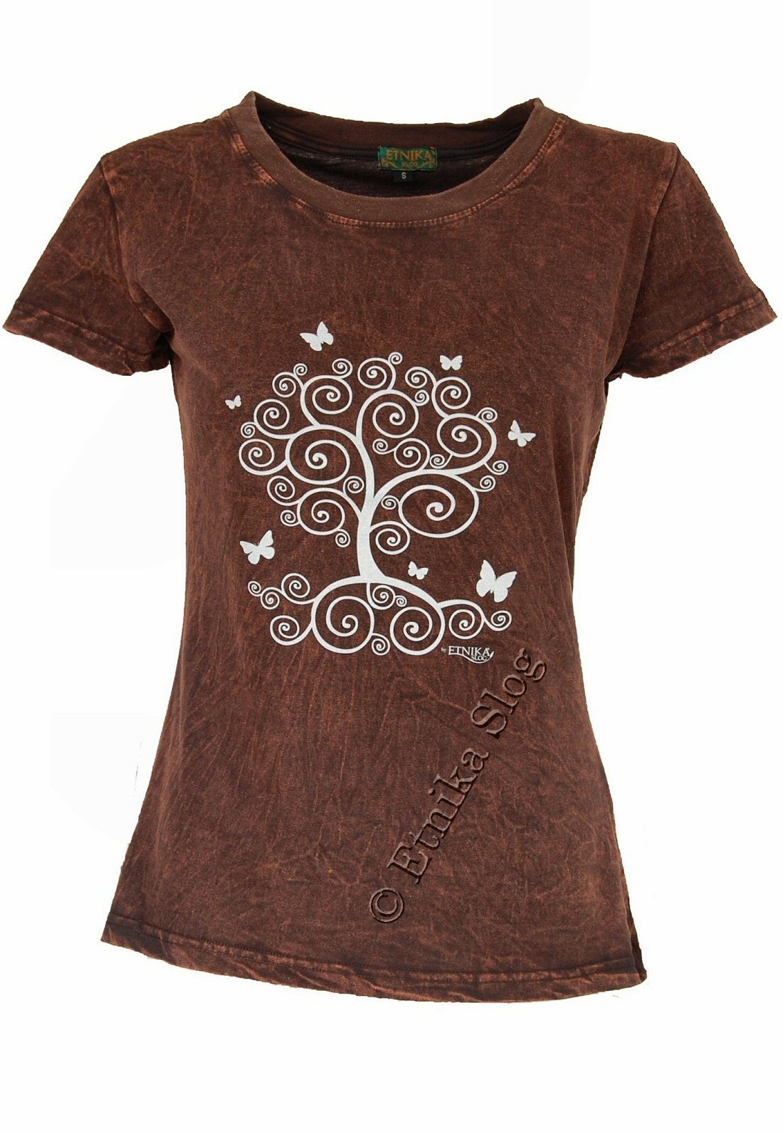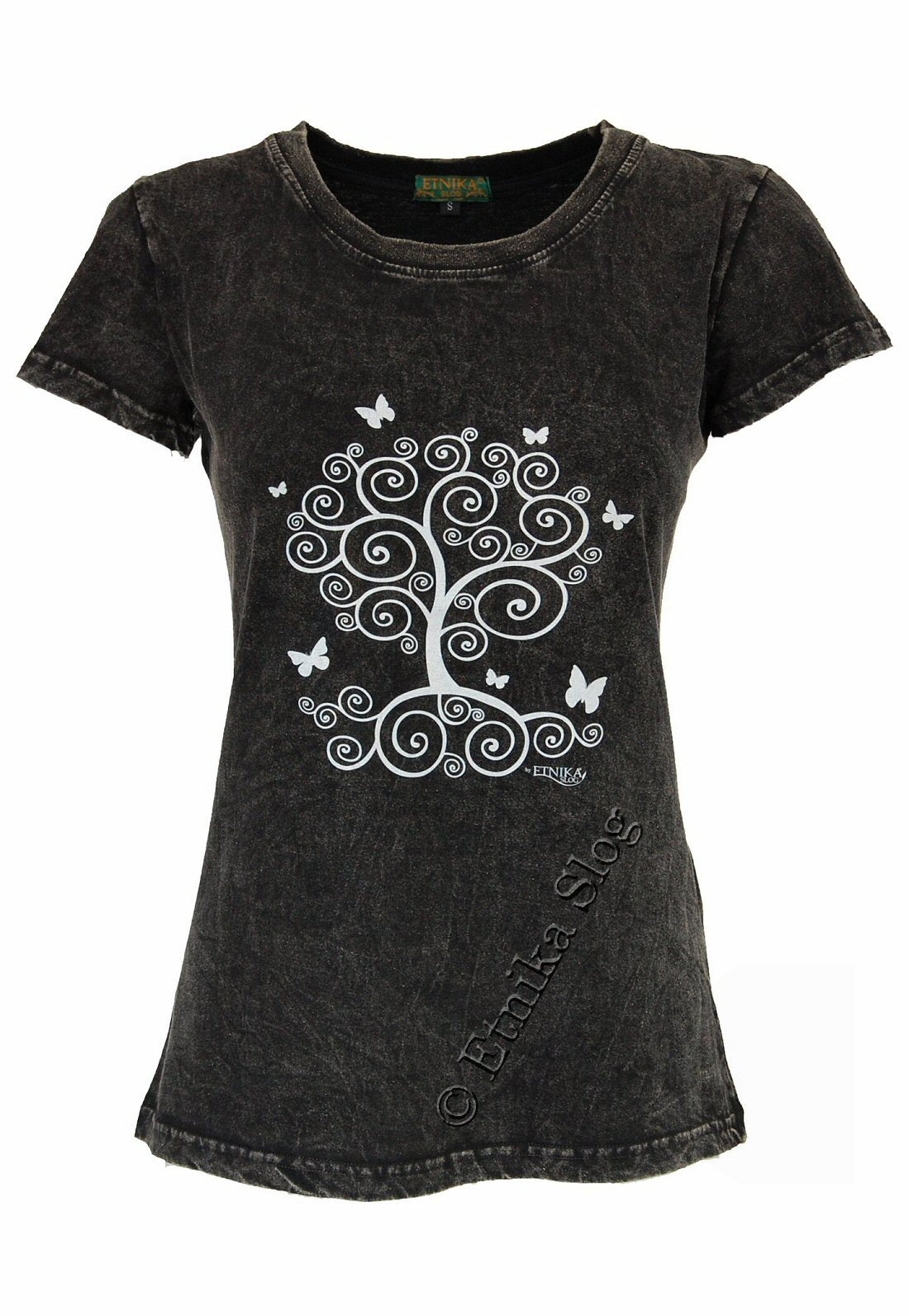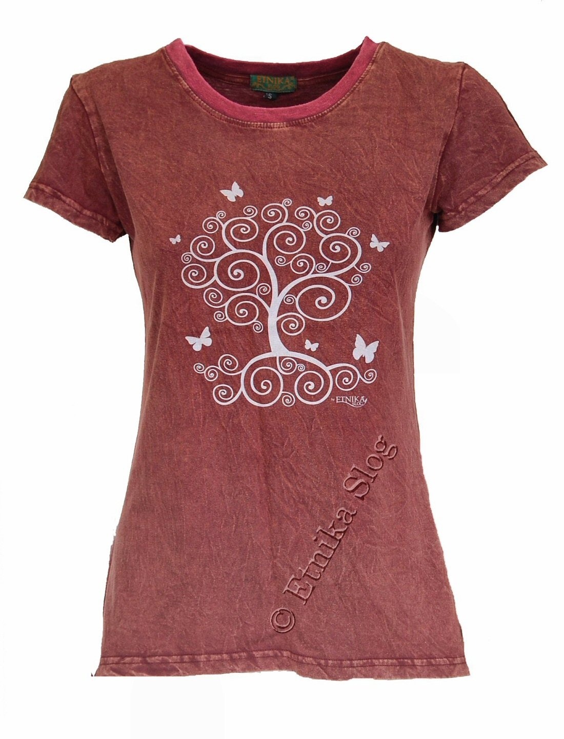 T-SHIRT DONNA IN COTONE STONEWASHED - OVERDYE CON STAMPA [ ALBERO VITA ]