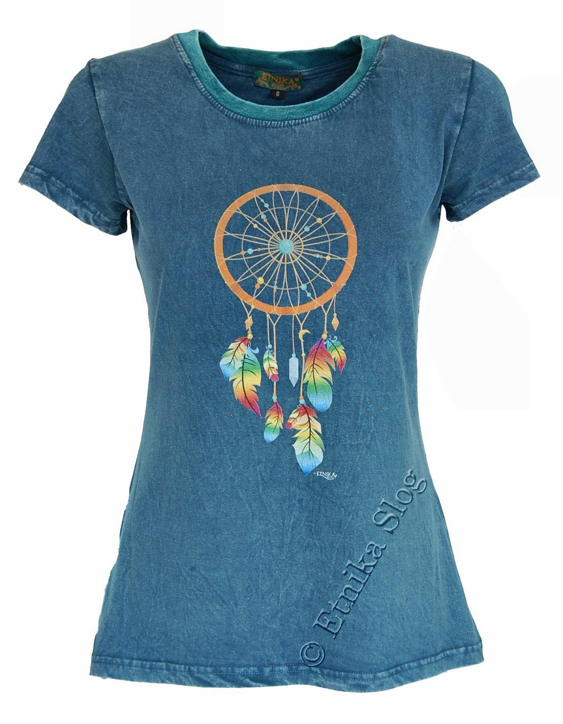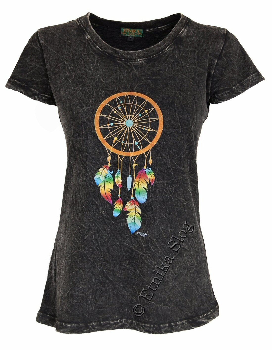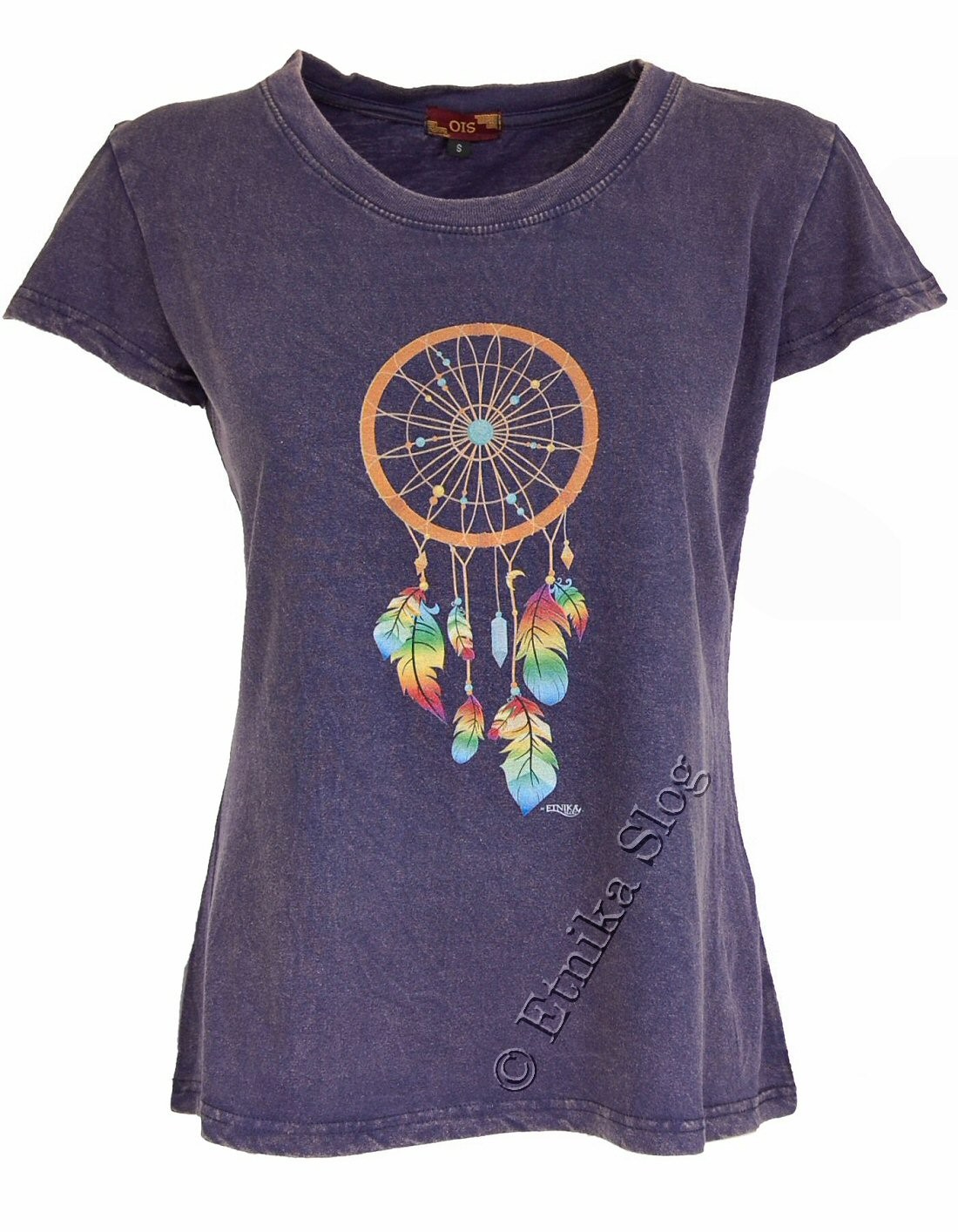 T-SHIRT DONNA IN COTONE STONEWASHED - OVERDYE CON STAMPA [ COLOR DREAMCATCHER ]