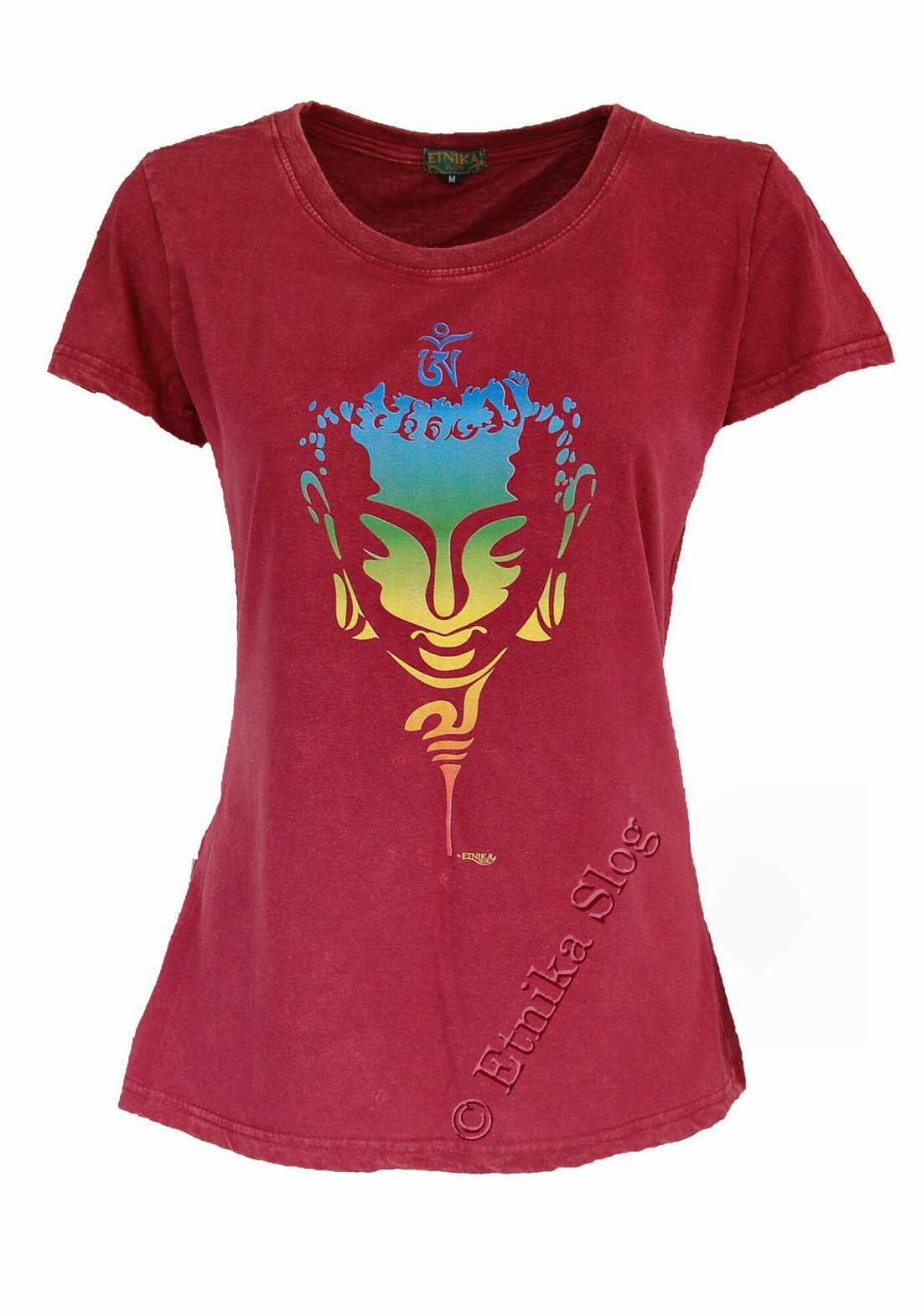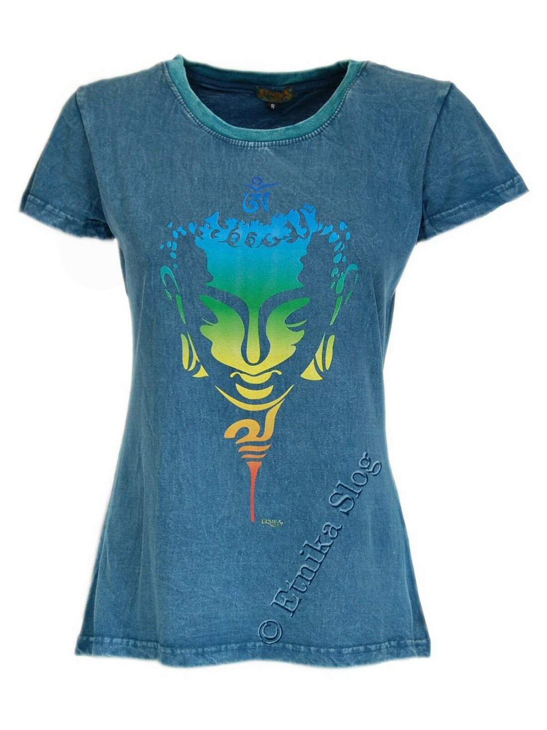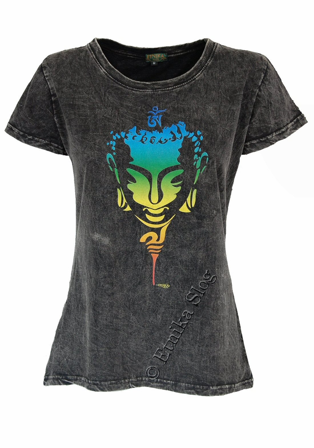 T-SHIRT DONNA IN COTONE STONEWASHED - OVERDYE CON STAMPA [ VISO BUDDHA COLORATO ]