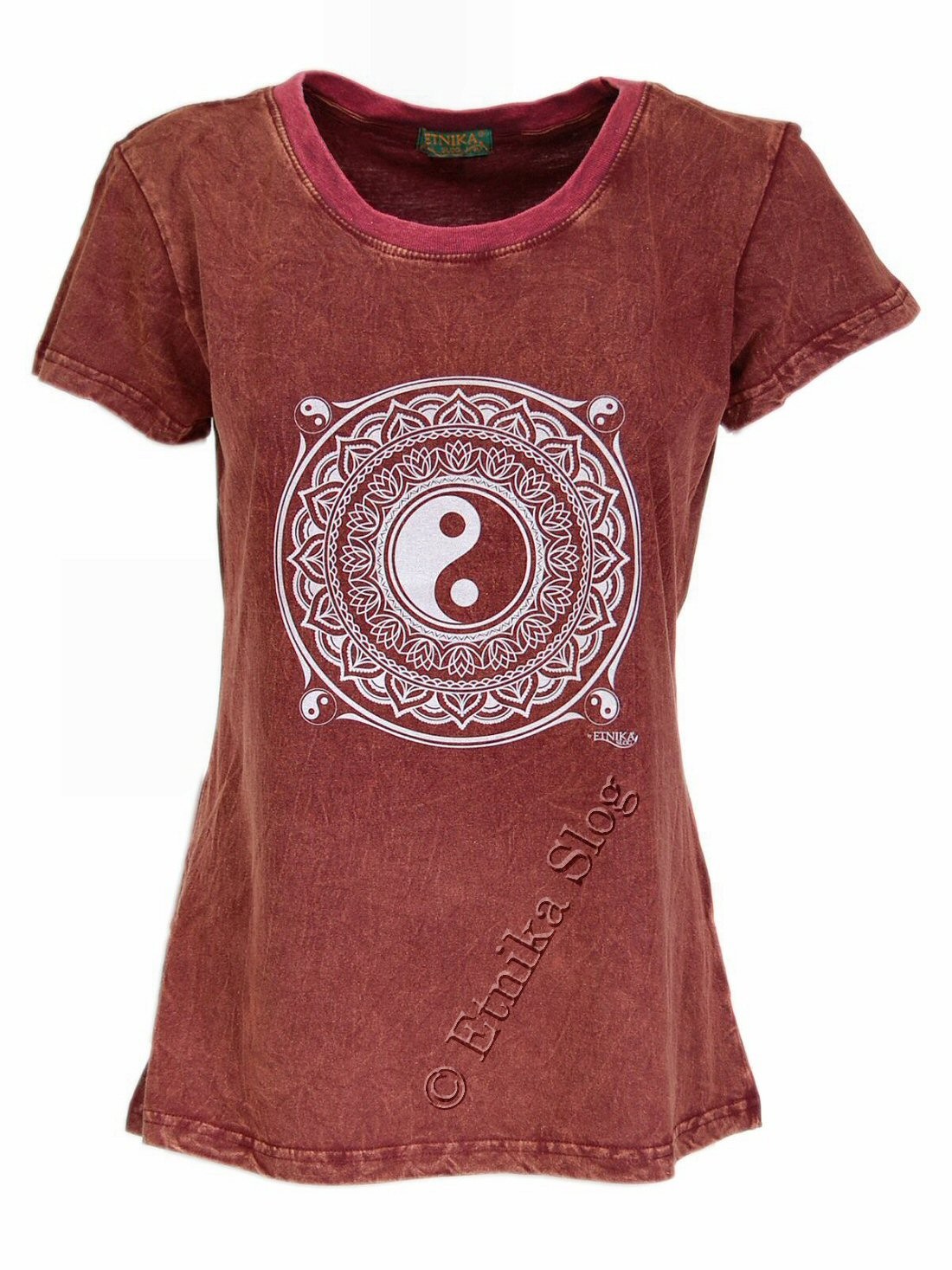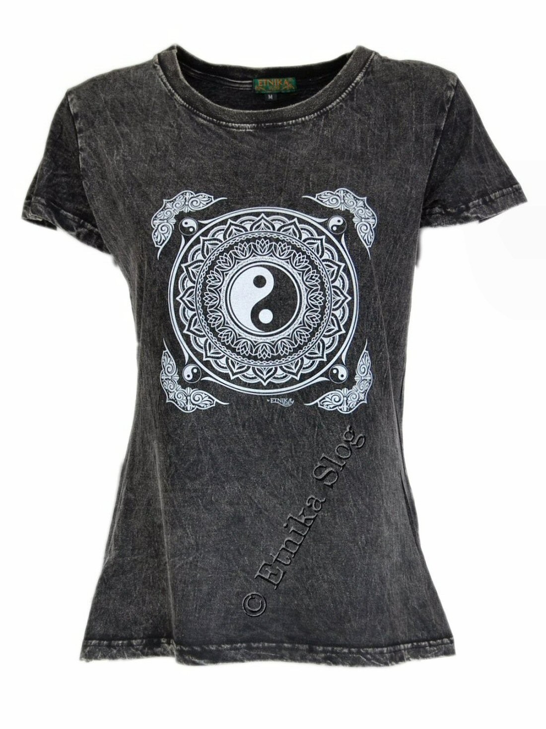 T-SHIRT DONNA IN COTONE STONEWASHED - OVERDYE CON STAMPA [ YIN E YANG ]