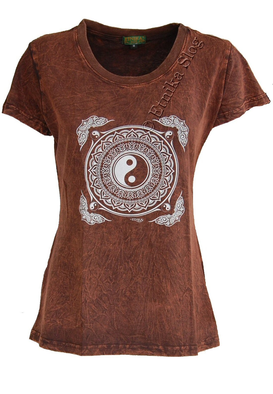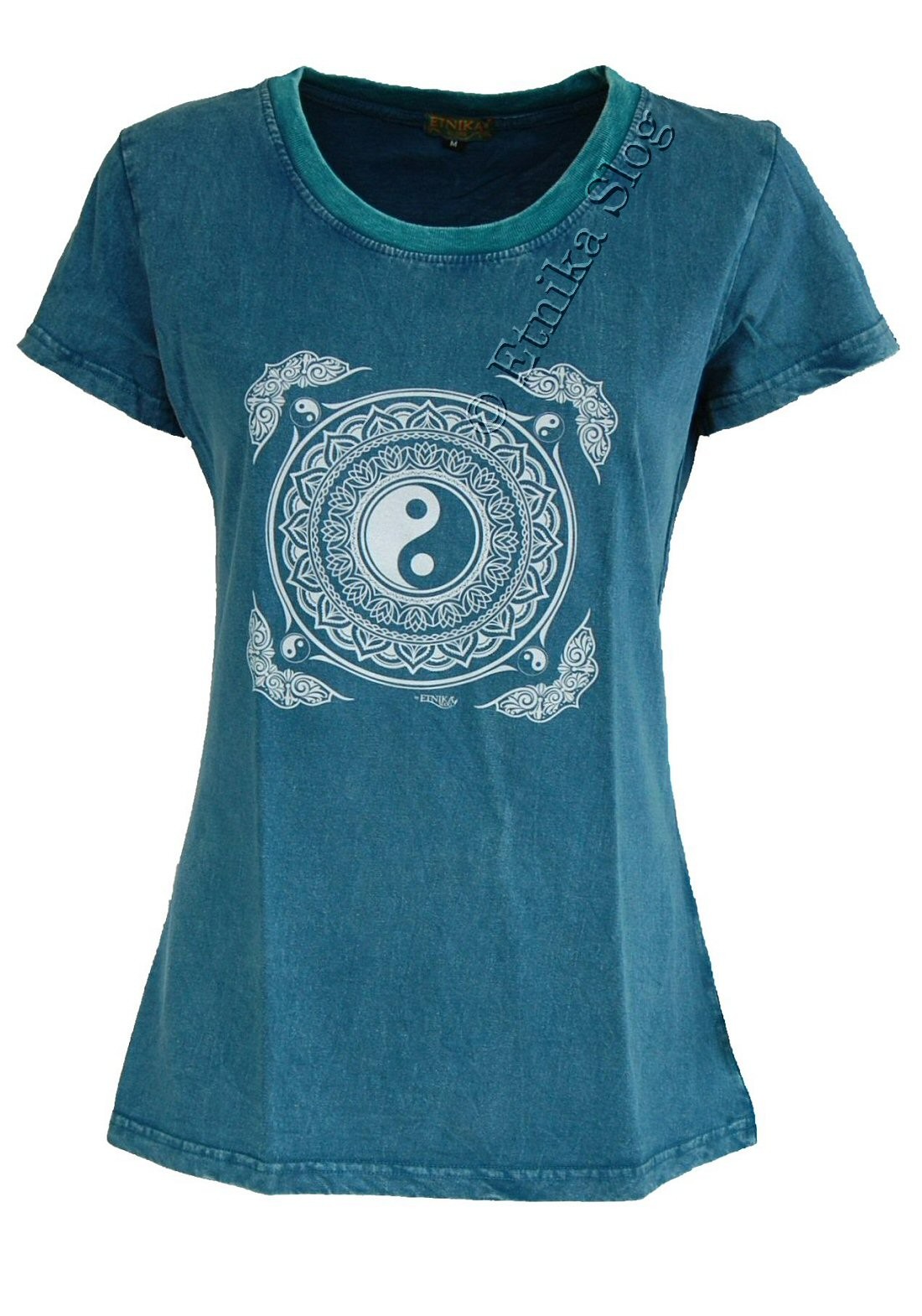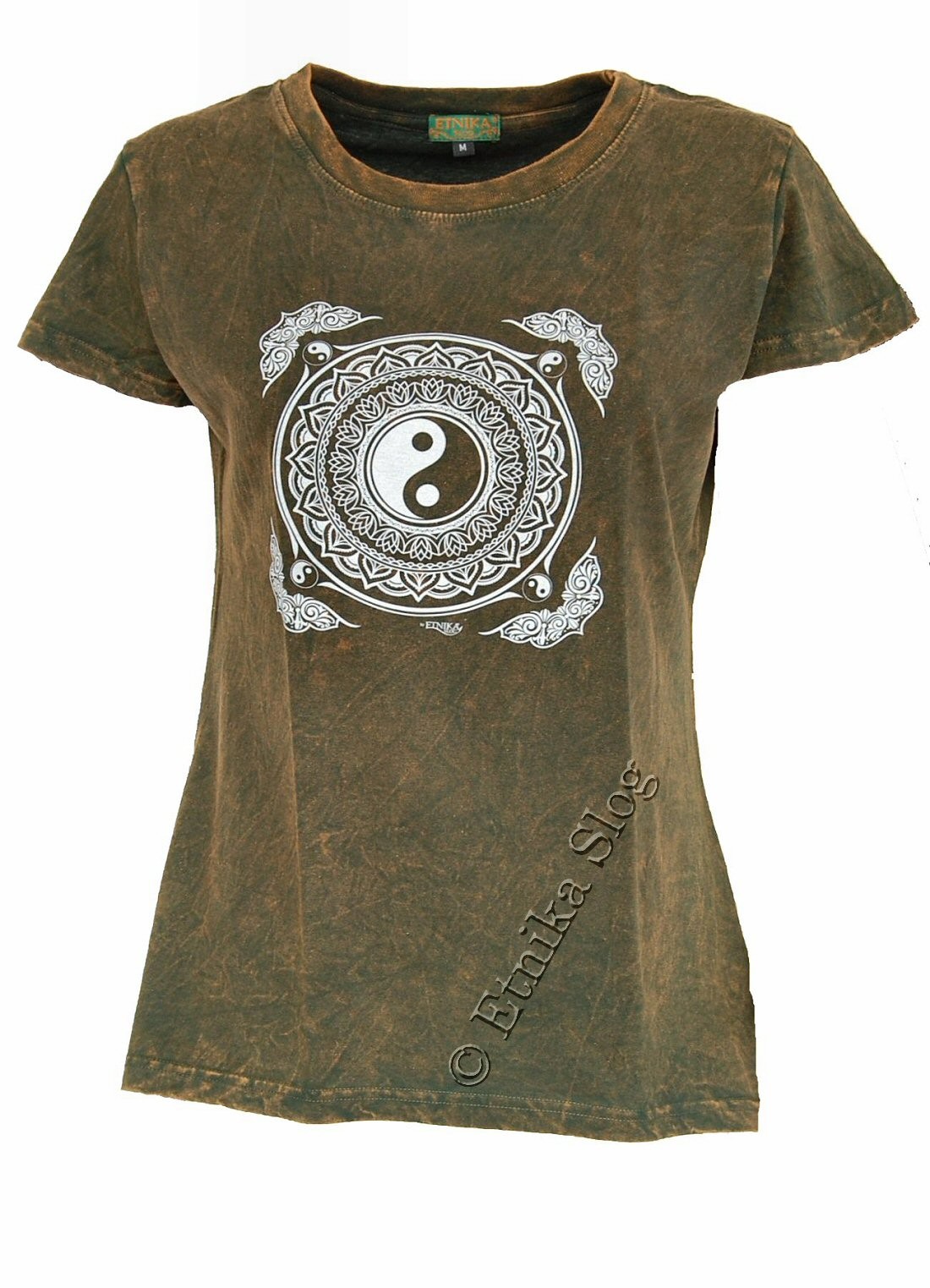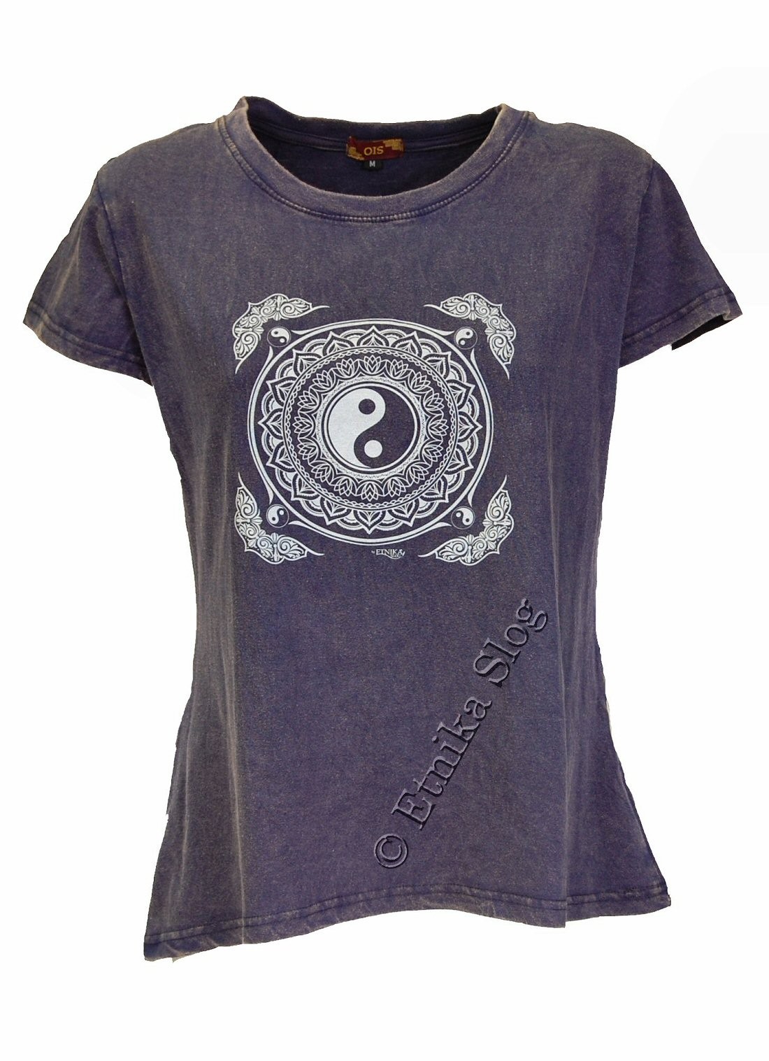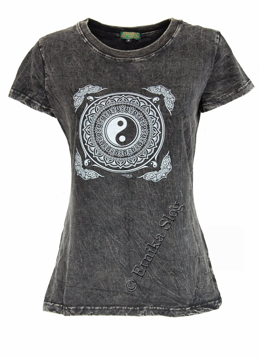 T-SHIRT DONNA IN COTONE STONEWASHED - OVERDYE CON STAMPA [ YIN YANG BIANCO ]