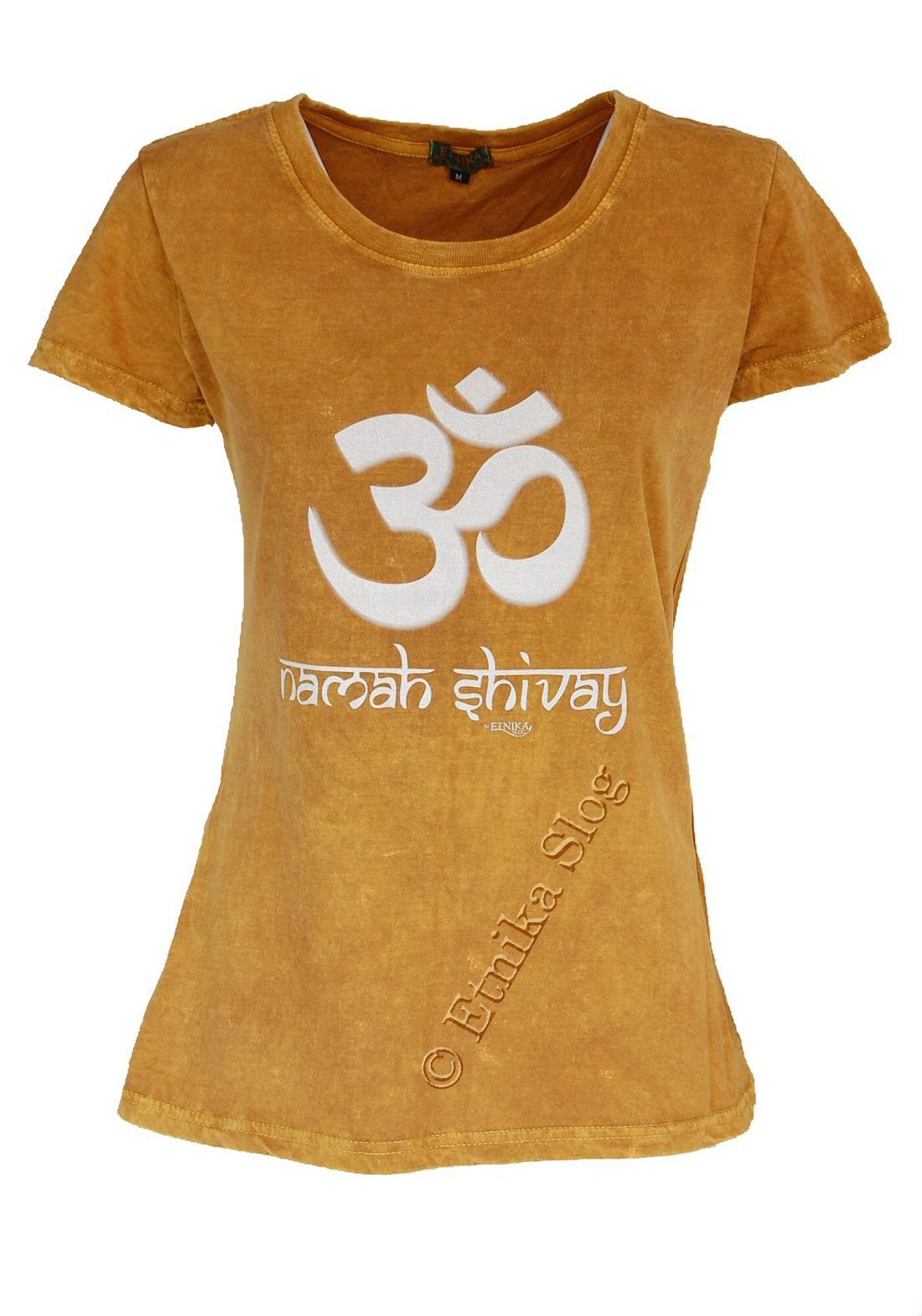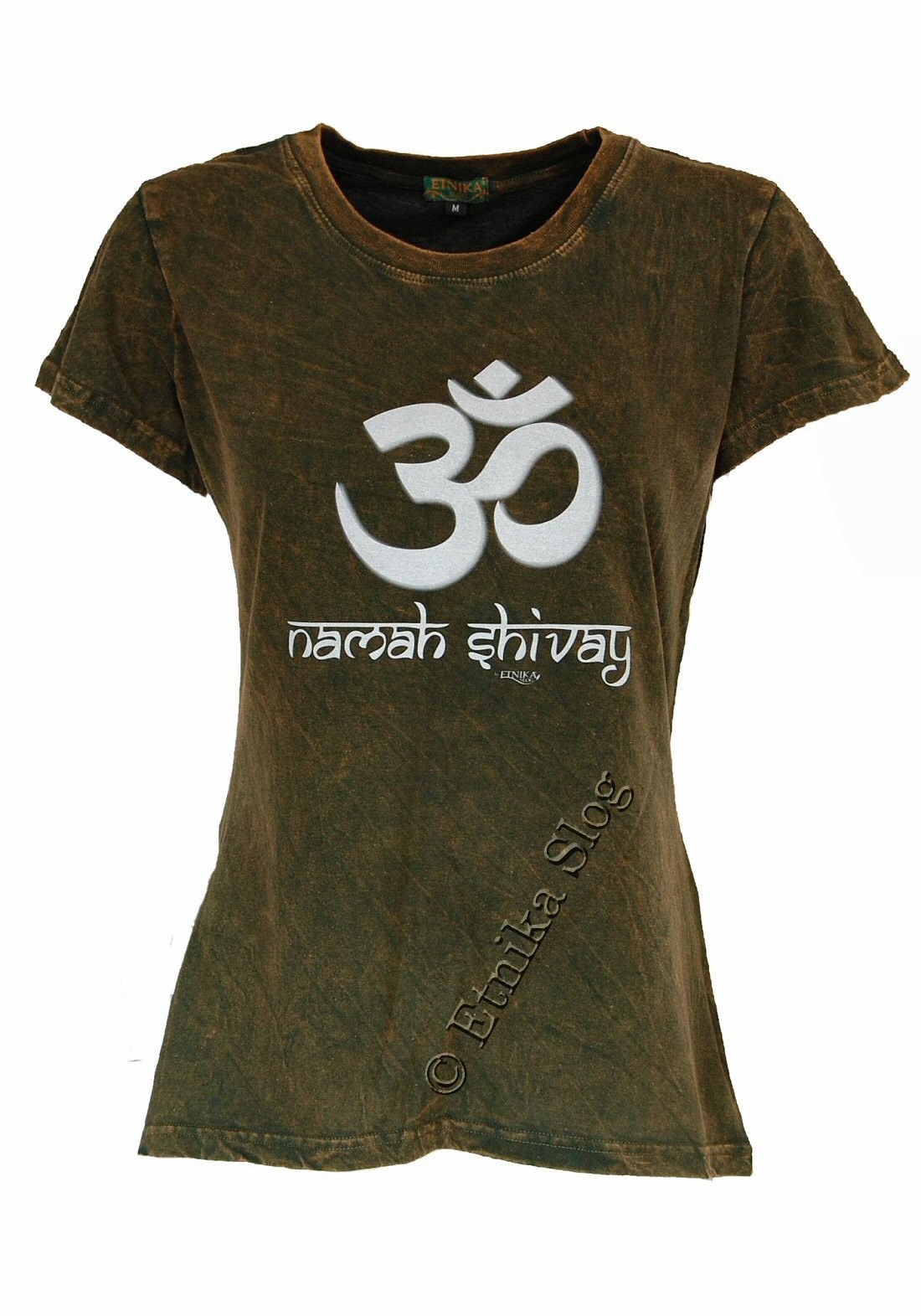 T-SHIRT DONNA IN COTONE STONEWASHED - OVERDYE CON STAMPA [ OM NAMAH SHIVAY ]