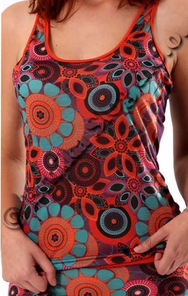 CANOTTA E CULOTTE IN POLIESTERE, CON STAMPA IN FRONTE, FANTASIA FIORI.