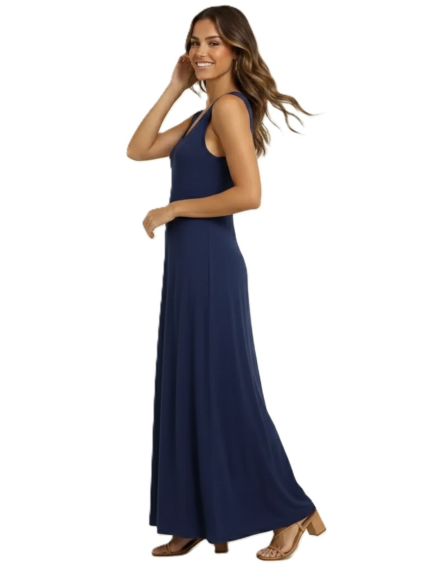 VESTITO LUNGO IN MAGLINA IN TINTA UNITA, SENZA MANICHE, SPALLINE LARGHE, COLLO ARROTONDATO, E CON DUE TASCHE INTERNE, LUNGO FINO ALLE CAVIGLIE.MATERIALE : 95% VISCOSA 5% ELASTANE.DISPONIBILE IN VARI COLORI.