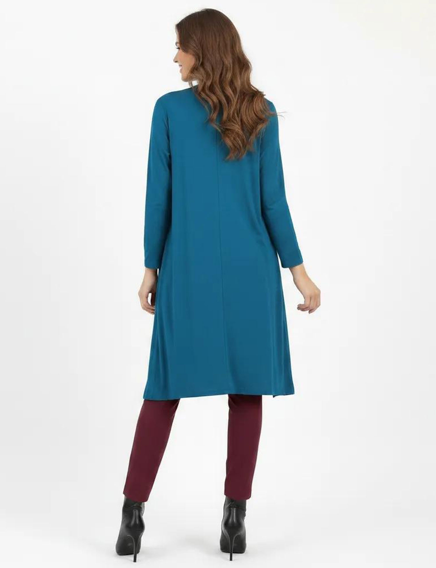 CARDIGAN LUNGO SPOLVERINO IN MAGLINA IN TINTA UNITA, CON MANICA LUNGA.