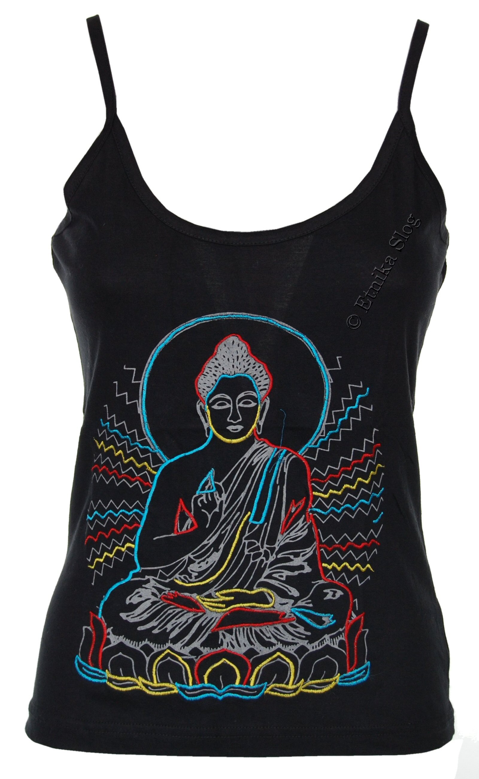 CANOTTA IN COTONE LEGGERO, CON STAMPE E RICAMI.