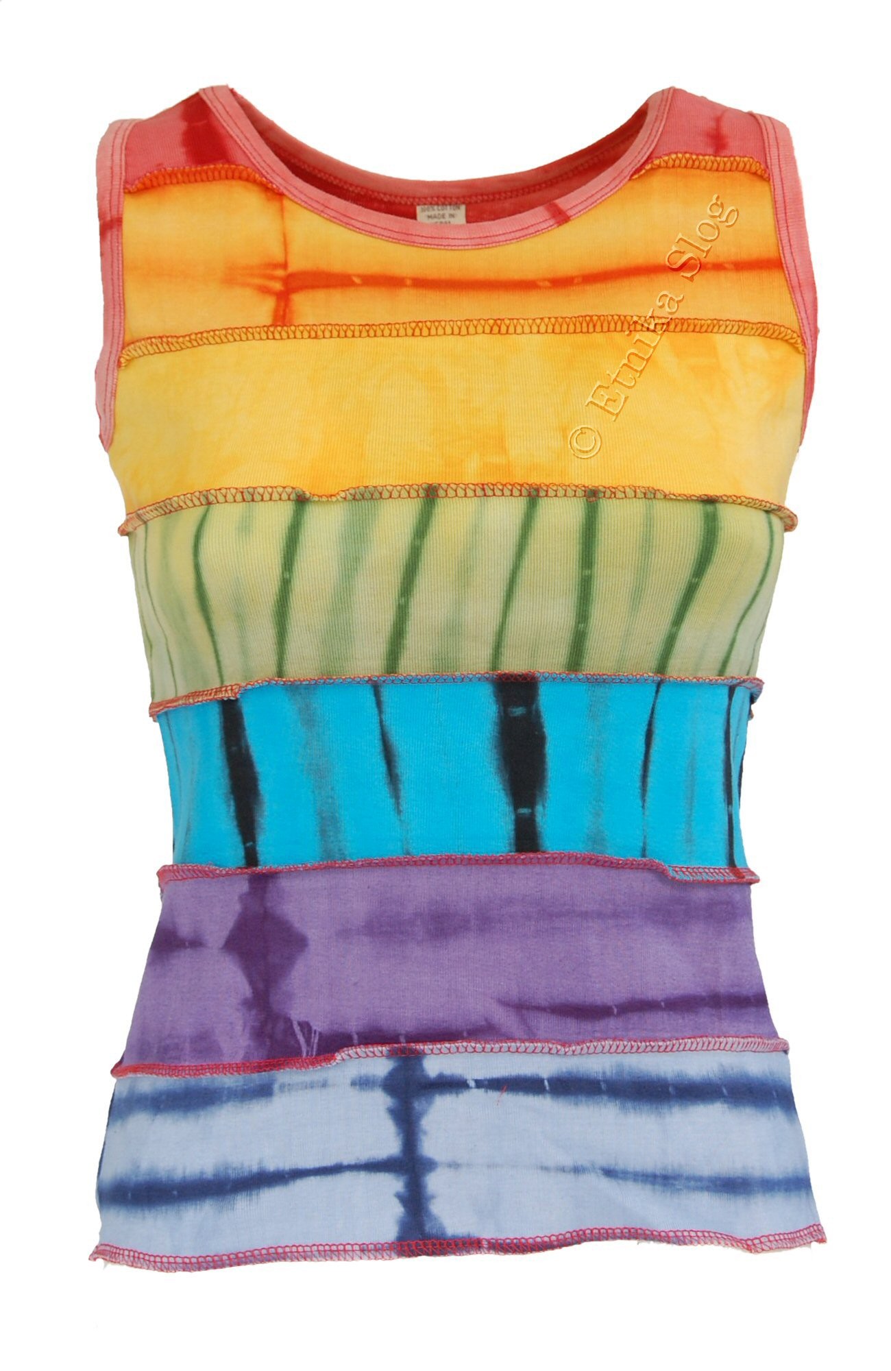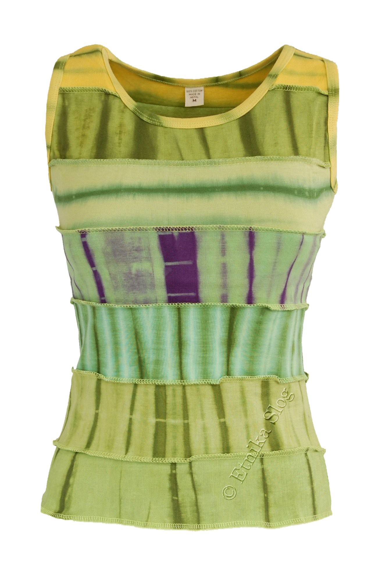 TOP IN COTONE A RIGHE TIE DYE RICUCITE, SPALLINE LARGHE.