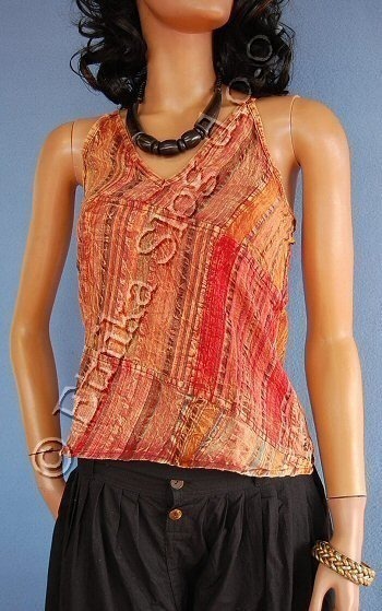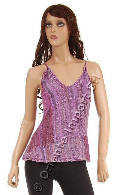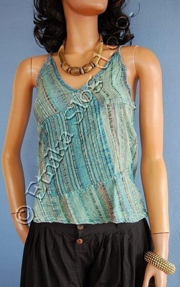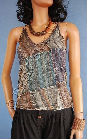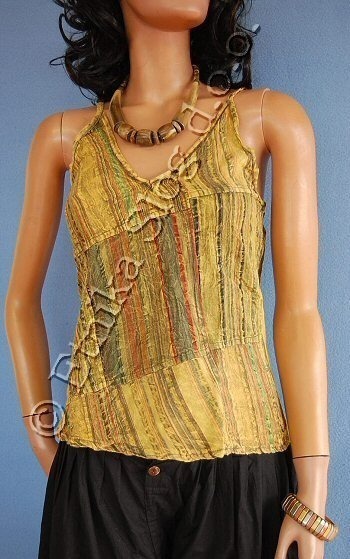 TOP IN COTONE STONE WASH A RIGHE. LARGO SOTTO, SPALLINA STRETTA REGOLABILE.