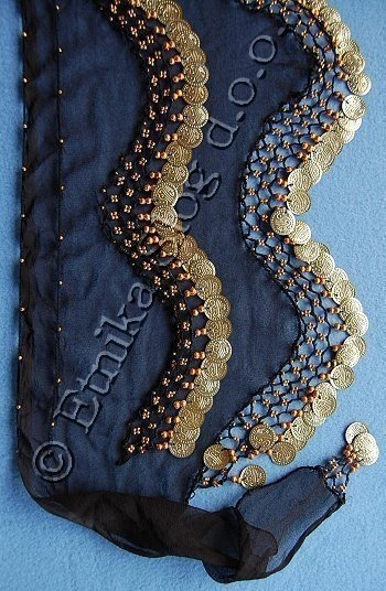 PAREO DANZA DEL VENTRE IN VISCOSA FASCIA STRETTA CON 2 ONDE - RICAMO AD UNCINETTO