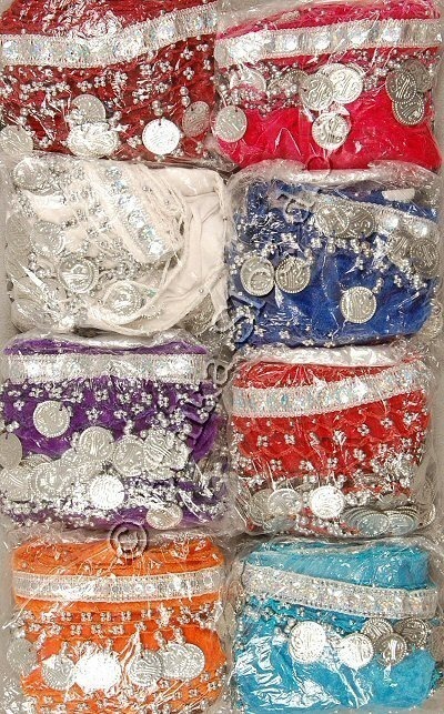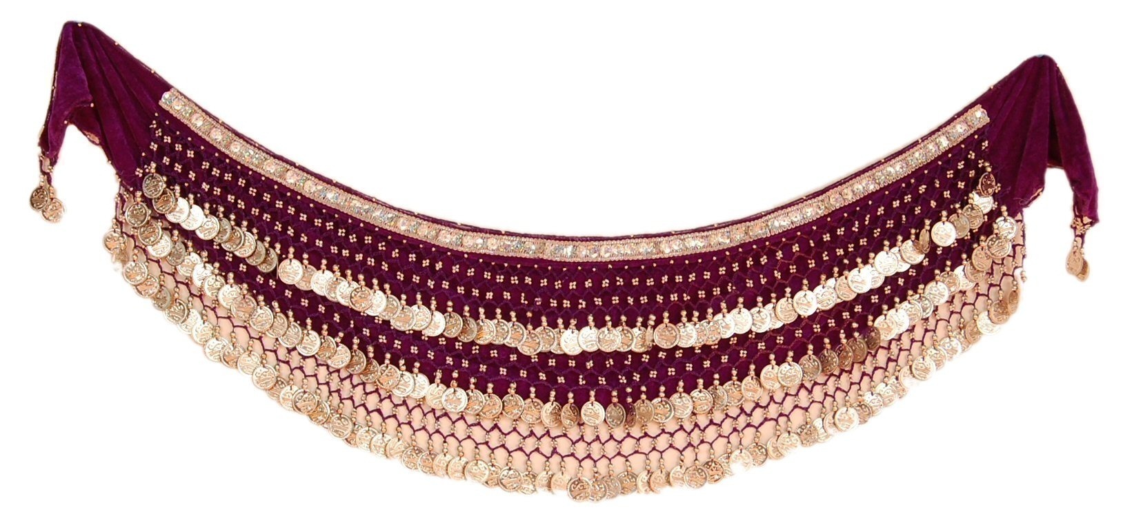 PAREO DANZA DEL VENTRE IN VELVET CON FASCIA DI PAILLETTE E 3 LINEE DI MEDAGLIETTE COLOR ARGENTO,