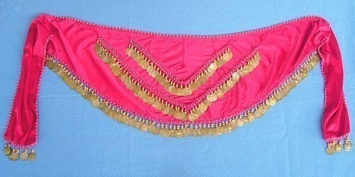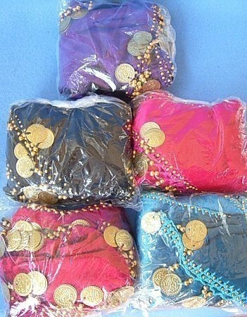 PAREO DANZA DEL VENTRE A FASCIA IN VELLUTO CON RICAMO AD UNCINETTO E 3 LINEE DI MEDAGLIETTE.