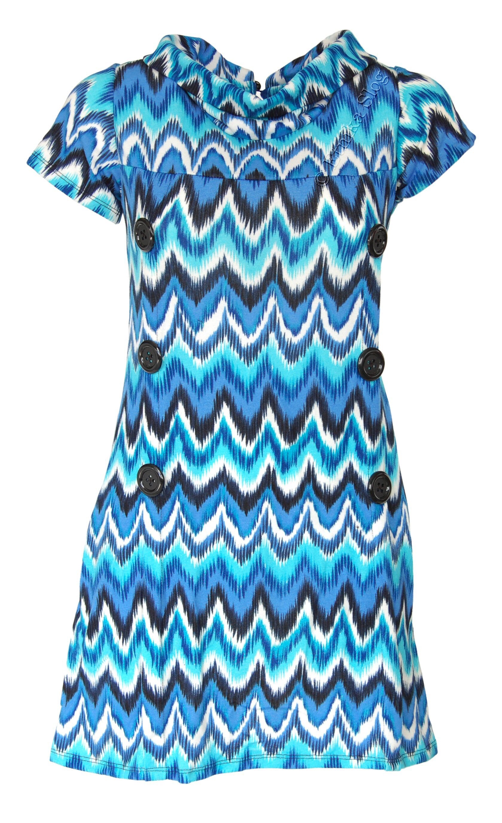 VESTITO CON MANICA CORTA IN TESSUTO CON ELASTAN, COLLO ROTONDO, 6 BOTTONI DAVANTI, 2 TASCHE.