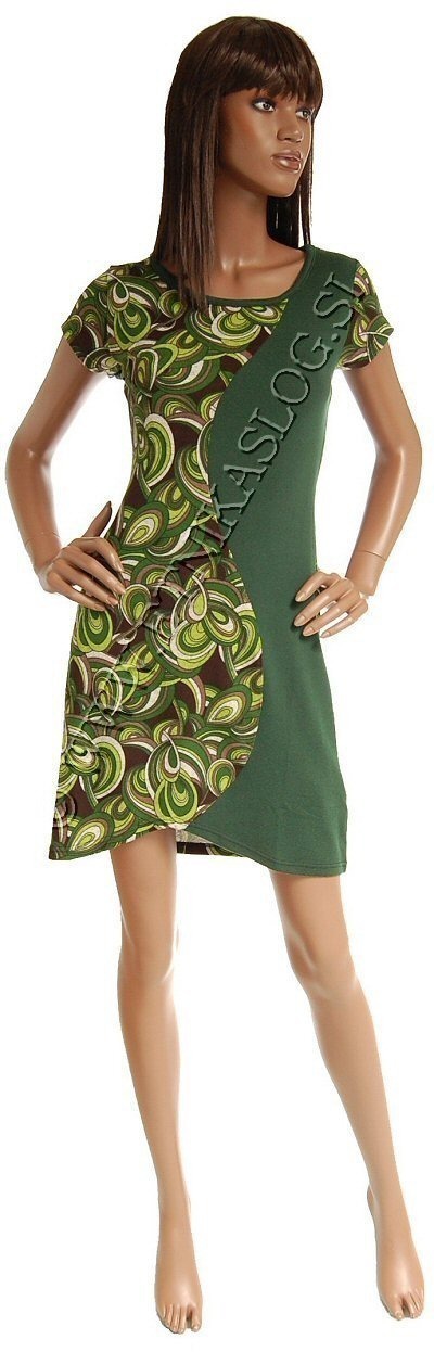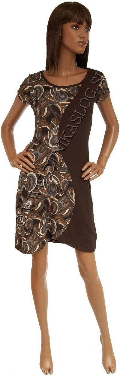 VESTITO MAGLINA DI COTONE E VISCOSA CON ELASTAN, CON MANICHE CORTE, SCOLLO ROTONDO, FANTASIA RICCI.