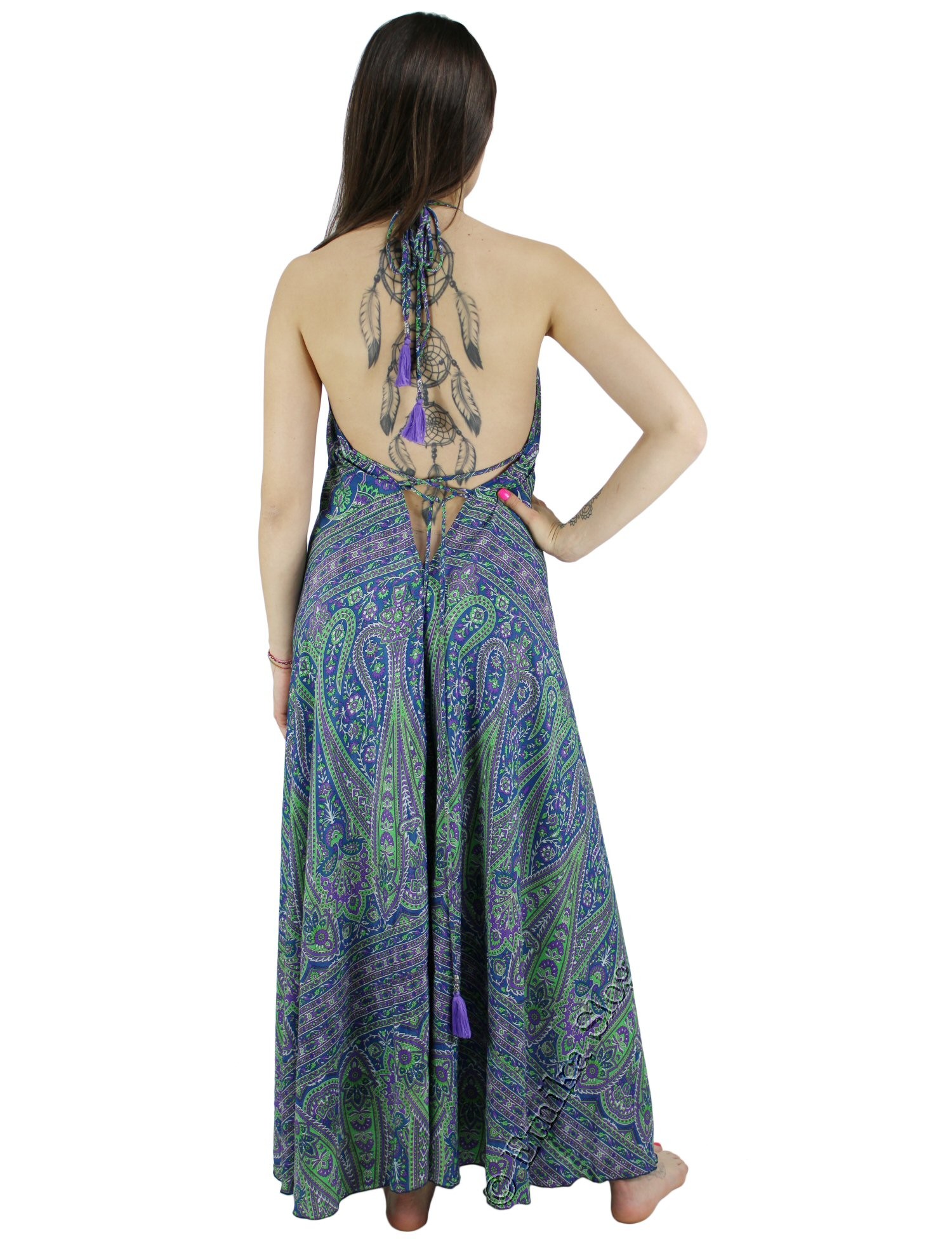 VESTITO LUNGO LACCI SUL COLLO E SPALLINE , SCHIENA SCOPERTA.