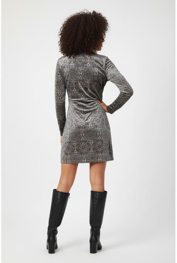 VESTITO IN VELVET CON ELASTAN , MANICHE LUNGHE SCOLLO A V