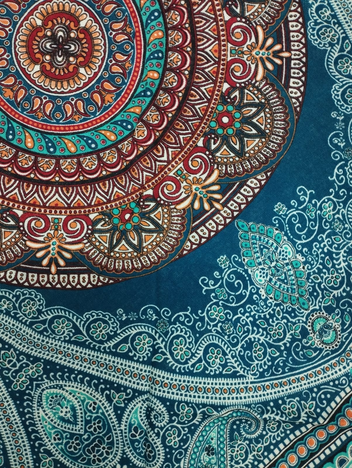 VESTITO LUNGO IN VISCOSA STAMPATA , CON FILO LUREX ORO.SCOLLO A V, ELASTICO IN VITA, MANICHETTA CORTA, DECORAZIONI POM PON IN COTONEFREE SIZE , DISPONIBILE IN 4 COLORI.